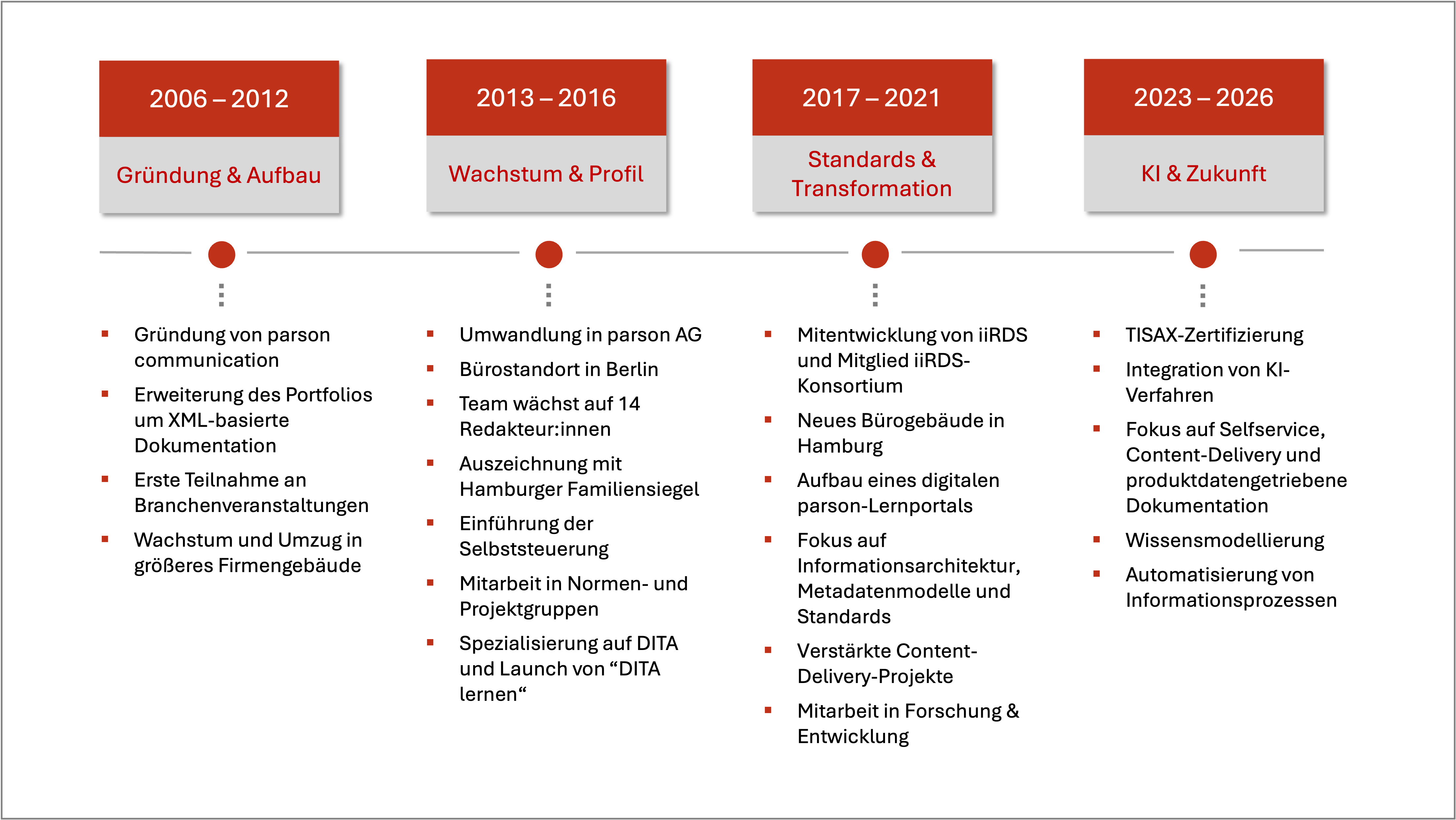 Damit etablierten wir uns Schritt für Schritt als spezialisierter Partner in der Technischen Kommunikation. Diese Phase war geprägt vom Aufbau eines tragfähigen Teams, wachsender Projekterfahrung und steigender Sichtbarkeit im Markt.