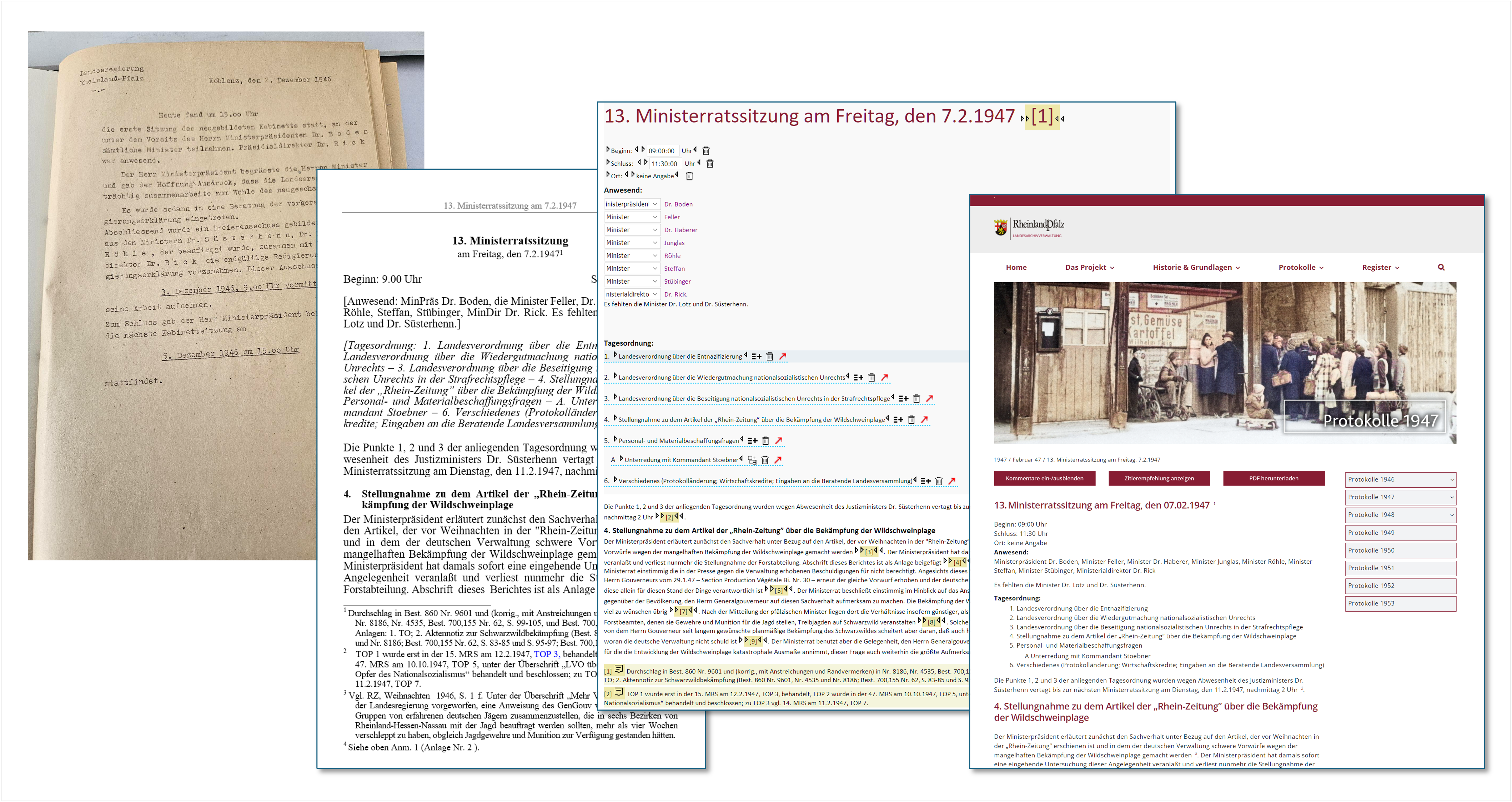 Die Landesarchivverwaltung Rheinland-Pfalz verfügt nun über eine moderne digitale Editionsumgebung für die Digitalisierung ihrer Archivbestände, die langfristig erweiterbar ist. Die historischen Protokolle werden schrittweise in TEI-konformem XML ausgezeichnet, mit Registern und wissenschaftlichem Apparat versehen und künftig online bereitgestellt.